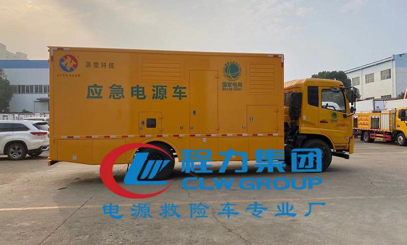 應急電源車是具有供電裝置的特種車輛,主要由汽車底盤、柴油發電機組、輸配電及操作系統、高效隔音、吸聲降噪箱、進排氣降噪系統、排氣消聲系統、照明系統、液壓支撐系統、電纜絞車和工具設備艙等組成。