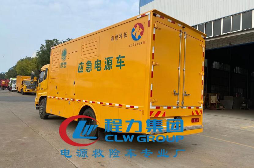 應(yīng)急電源車是具有供電裝置的特種車輛,主要由汽車底盤、柴油發(fā)電機(jī)組、輸配電及操作系統(tǒng)、高效隔音、吸聲降噪箱、進(jìn)排氣降噪系統(tǒng)、排氣消聲系統(tǒng)、照明系統(tǒng)、液壓支撐系統(tǒng)、電纜絞車和工具設(shè)備艙等組成。