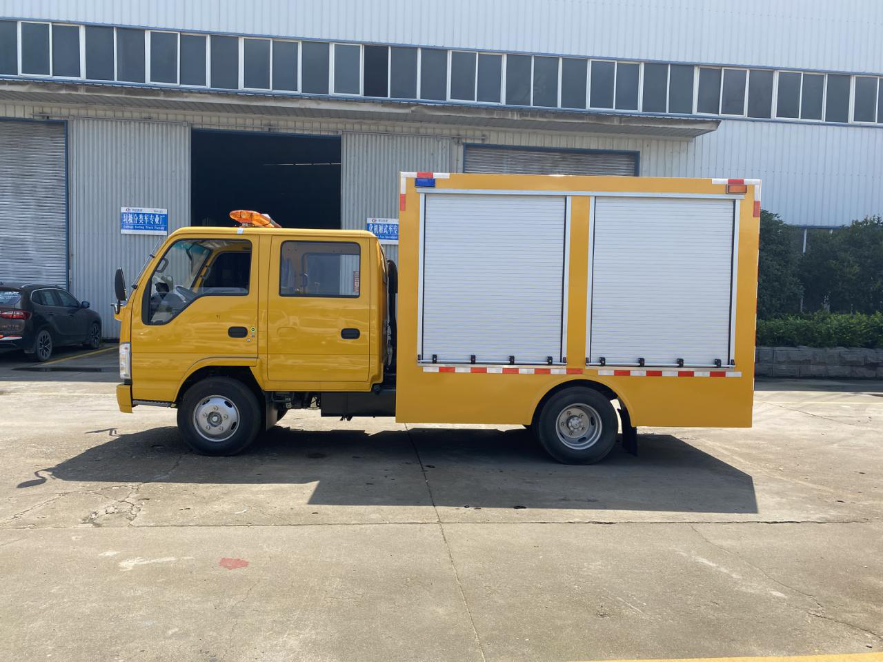 長排jing燈:駕駛室頂部安裝長排黃色工程jing燈,帶喊話器。